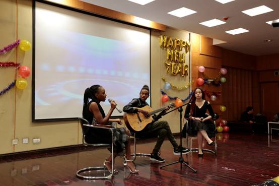 文艺表演环节异彩纷呈、形式多样。首先,四位能歌善舞的乌兹别克斯坦姑娘身着民族服装闪亮登场,她们随着音乐的律动载歌载舞,尽显异域风情;“对不起,我的中文不好……”来自吉布提的子吉和巴基斯坦的Danish为我们带来了这首中文歌曲,搞笑的歌词和贴近职工生活的内容获得了观众的阵阵掌声;五名非洲员工演唱的《Papa ou t’es》,他们热情洋溢,引得台下的职工们也跟着一起舞动;来自加纳的职工Maxwell的小号演奏,向大家展现了职工的多才多艺;非洲的三名职工在流光溢彩的灯光下为观众带来了吉他弹唱《All of me》,深情的演绎温暖了每位观众;一首非洲串烧舞蹈,动感十足的非洲舞引爆全场,向观众展现了非洲特有的热情奔放,把联欢会推向高潮,让在场观众及嘉宾感受到了喜庆的迎新氛围。哈萨克斯坦、吉尔吉斯斯坦等国家职工也参与了演出。