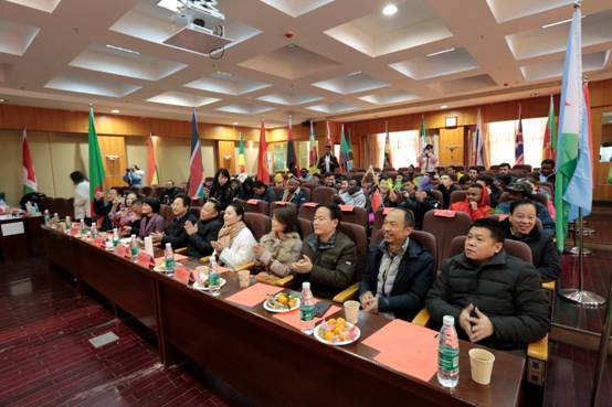 联欢会在记录职工学习、生活的短片中拉开帷幕。张彦铎副董事长代表学校致辞,他表示,2019年学校来华职工事业取得长足发展,职工规模不断扩大,在校职工总数增长两倍,生源国扩大到23个国家,办学水平不断提高。他期待在“一带一路”倡议下,来华职工能将自己国家优秀的文化带到中国,同时也能将中国的优秀文化传播到世界各地,增加国家间的文化交流,并表示学校将尽全力为大家的学习和生活提供保障。最后他祝福职工们都能在学校度过愉快的校园生活,并祝愿师生们新年快乐,在新的一年工作顺利、学习进步。