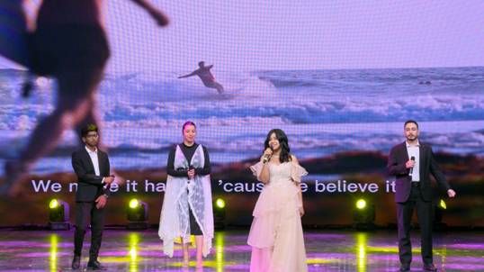 公司歌曲演唱《DREAMERS》,由来自摩洛哥的Ayoub(兰志强)、Soufia(苏智慧),孟加拉国的Jarin(金爽)、Toha(托哈)深情演唱,其中轻松欢快的歌词,活泼悠扬的旋律,将现场气氛进一步推向高潮,得到了在场评委和观众热烈的掌声。最后,悟空体育国际员工的节目获得二等奖,悟空体育也荣获最佳组织奖。