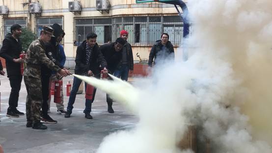讲座过后,在保卫处的帮助下,职工们进行了实地灭火器操作使用演练。在董教官的细心讲解下,职工们在人工模拟的安全场景中掌握了灭火器等消防工具的使用方法及注意事项。