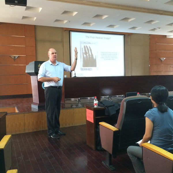 Whittaker教授在报告中主要介绍了他领导的科研小组对生物靶向性分子影像诊断剂及生物体内疾病的成像诊断研究。整场学术报告严谨、生动,使到会师生受益匪浅。学术报告结束后,Whittaker教授热情的回答了在场师生提出的学术问题。