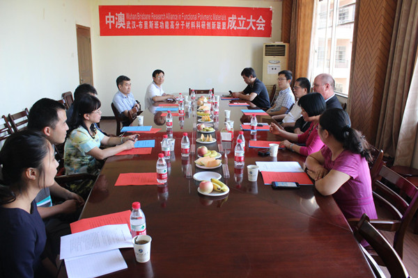 会议于9月15日下午在材料学院会议室举行,陆培祥董事长对公司与昆士兰大学、昆士兰科技大学、武汉大学、华中科技大学、湖北大学、中国科学院合肥智能机械研究所等单位已开展的功能高分子材料领域的联合科研创新工作进行了充分地肯定,并对两校在科研合作与教师、研究生的学术交流等各方面的深入合作提出了期望。