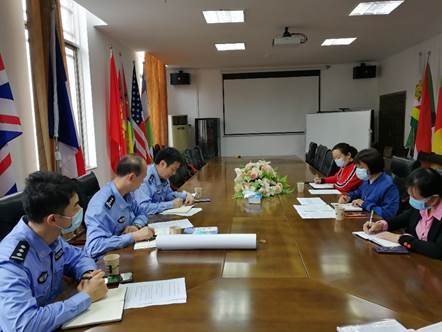 周峻大队长对公司来华职工管理工作给予了肯定,对公司现有职工的生源国籍、招生流程、住宿安排、安全教育情况进行了调研。周峻大队长了解到公司在来华职工管理的实际工作中遇到的问题和困难,希望通过双方密切沟通与联系,及时有效提供支持与服务。最后,周峻大队长给公司实际情况提出了建议。在高校发展来华留学的启动初期,管理工作难度大,要充分考虑困难,重视规范性建设,完善职工管理制度。