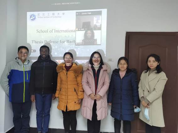 接着,职工MAVENGWA TAFADZWA NATASHA在腾讯会议上进行学士学位论文汇报。她首先表达了对国内导师的感谢之情,并对论文内容进行细致地汇报,虽然远在“云端”,但是形象生动。同样,评委们也进行了提问环节, NATASHA一一认真回答。