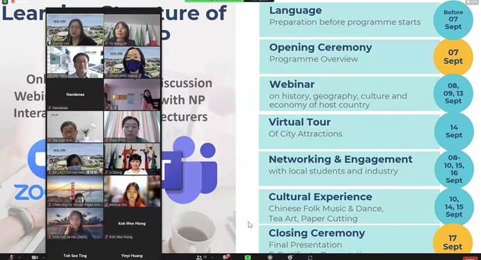 参加本次海外移动课程项目的员工来自新加坡义安理工学院生命科学学院。本次移动课程项目主要包括中国概况以及文化课程体验、两校员工线上英文交流活动以及线上企业参观学习等。