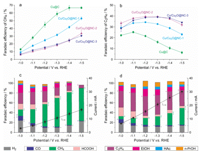 图1氮掺杂碳包覆铜/氧化亚铜复合催化剂调控电化学二氧化碳还原选择性生成甲烷或乙烯
