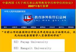 泰国兰实大学是中国教育部正式认证的首批泰国高校之一,中国教育部留学监管机构优先推荐的泰国高校之一。(http://jsj.moe.gov.cn/n1/12048.shtml)