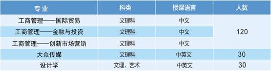 备注:除工商管理专业(国际贸易/金融与投资/创新市场营销)外,大众传媒、设计学专业需额外一次性缴纳基础课程强化费人民币10000元。上述费用入学时学校统一安排缴纳。